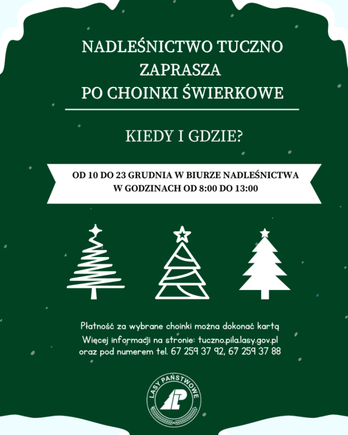Sprzedaż choinek odbywać się będzie w dniach 10-23 grudnia 2025 r. w godzinach od 8:00 do 13:00 w biurze Nadleśnictwa.
